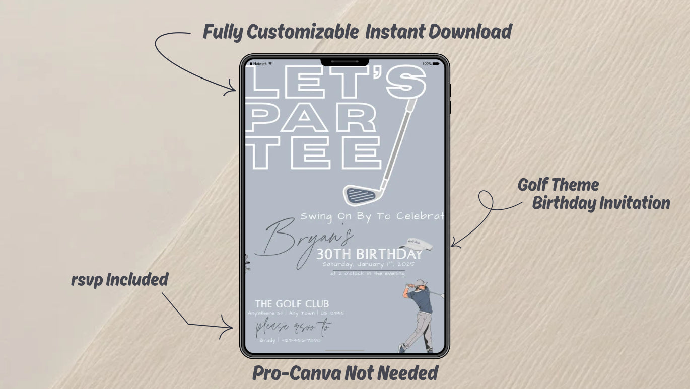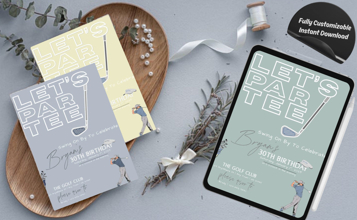 Digital Golf Themed Party Invitation Template (One Page) Once Purchased, you can copy page multiple times for free!