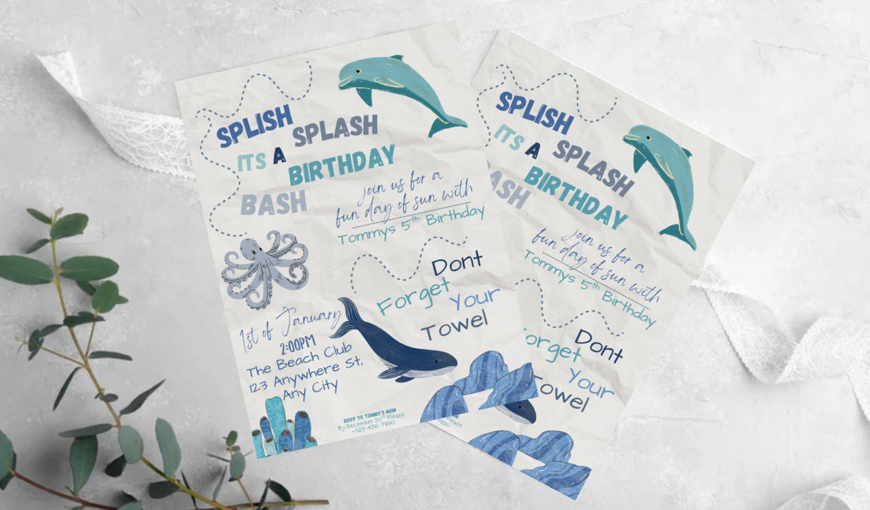 Digital Slpish Splash Summer Birthday Invitation Template