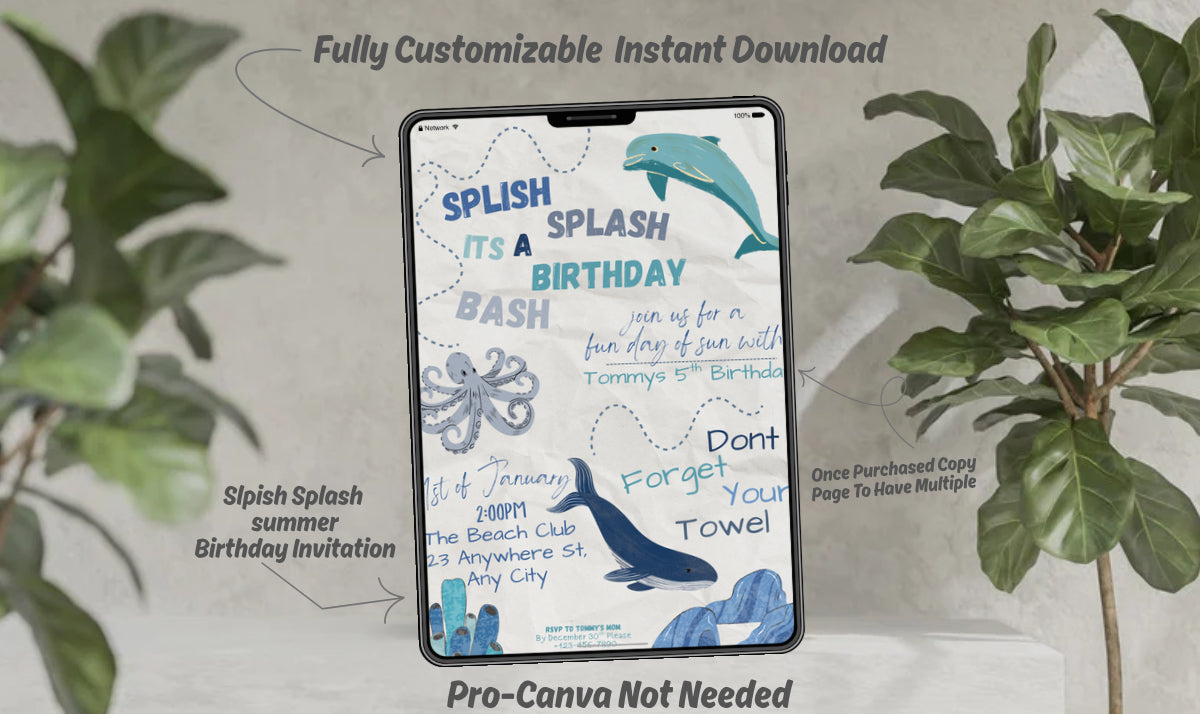 Digital Splish Splash Summer Birthday Invitation (One Page) Once Purchased Copy Page To Have Multiple. Fully Customizable!
